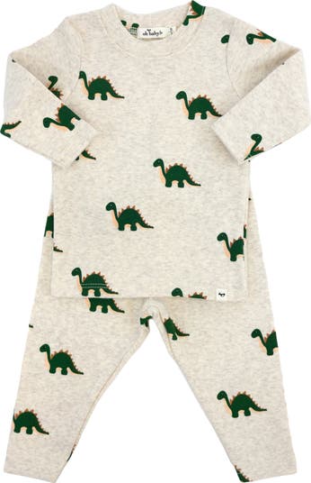 All over dinosaur print on a soft cotton long sleeve tee with matching pants. Available in infant sizes. Designed in Minnesota.