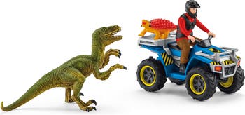 - THE WORLD OF DINOSAURS: The Quad Escape from Velociraptor is part of the Dinosaurs collection of figurines and playsets from Schleich. Great for gifting, this playset can stand alone or fit into a larger, modular play world.