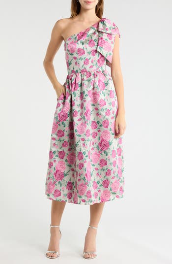 Elevate your special occasion style with this stunning floral-jacquard dress complete with a bow embellishment at the shoulder.