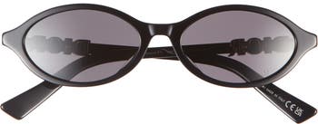 Elevate your sunny-day look with these chic oval sunglasses glammed up with crystal-embellished logos on the temple and smoky-tinted lenses that offer full-coverage UV protection.