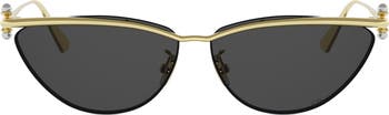 Glam up your sunny-day look with these chic cat-eye sunglasses made in Italy from polished metal and adorned with faux pearls that glow at the hinges.