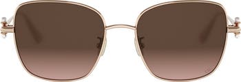 Glam up your sunny-day look with these chic square sunglasses made in Italy from polished metal and adorned with faux pearls that glow at the hinges.