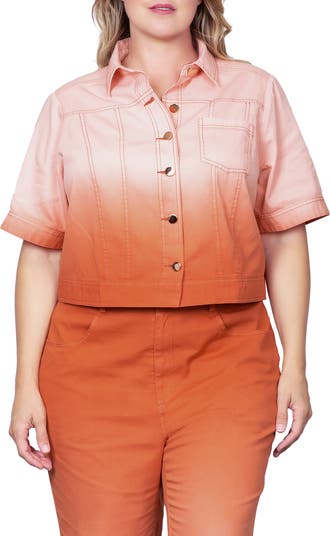 A dreamy dip-dye design enlivens this casual-cool jacket updated with elbow-length sleeves.