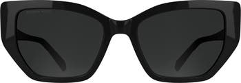 Signature logos shine at the temples of chic cat-eye sunglasses featuring glossy frames with gradient lenses.