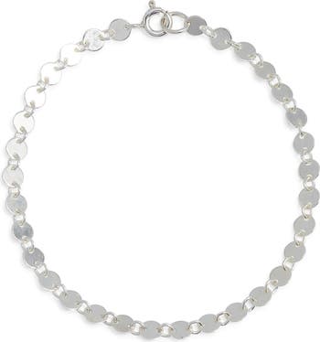 Gleaming disks add dynamic, elegant style to this contemporary chain bracelet.