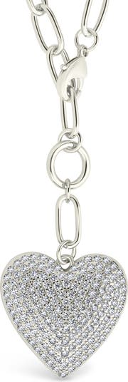 Pavé cubic zirconia bring a deluge of sparkle to the statement heart pendant that dangles from this chain necklace plated in 14-karat gold.