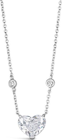 A stunning 4 carat heart shaped diamond crystalline pendant suspended on a delicate chain featuring 2 bezel set stones on the sides. This necklace creates an elegant and luxurious statement which is a must have for any fashionista.