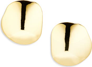 A molten finish catches the light on these organically shaped button stud earrings plated in polished 14-karat gold.