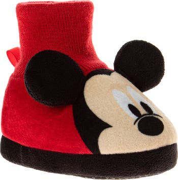 A sock-like cuff adds to the coziness of this plush Mickey Mouse slipper baby will love.