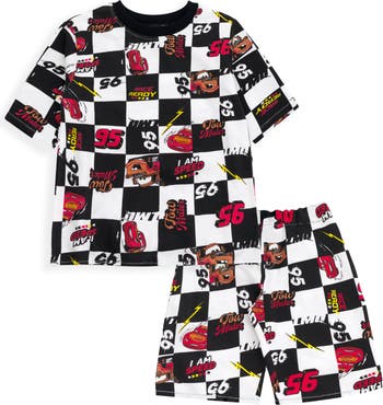 - ["Coordinated two-piece set includes a short-sleeve graphic top and matching pull-on shorts; perfect for effortless everyday styling","Features beloved characters including Woody, Buzz Lightyear, and Lightning McQueen with bold screenprints or vibrant allover patterns","Crafted from 100% cotton in soft French terry or lightweight jersey for breathable comfort during play or rest","Designed with unique finishes like optic-wash textures, checkered racing flags, and iconic slogans including \"Kachow\" and \"Property of Andy\"","Easy-on construction features a stretchy elastic waistband on the shorts and convenient shoulder closures on smaller sizes to simplify dressing"]