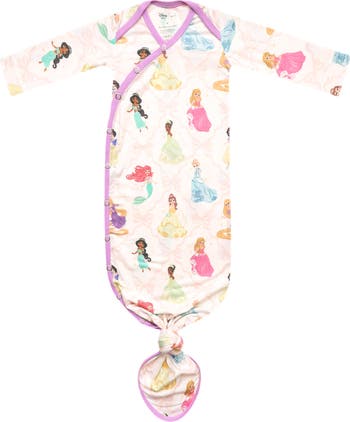 Baby will snuggle right into this soft and stretchy knotted gown secured with easy-on/off snaps and outfitted with fold-over mitts to help prevent scratches.