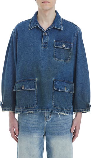Scuffed-up, weathered details and a boxy silhouette bring ultimate workwear boldness to a denim polo framed by slightly abbreivated sleeves.