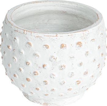 Distressed Terra Cotta Hobnail Planter, White