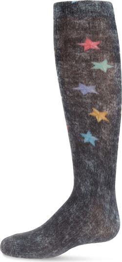 Only the best for your little rock star - why shouldn't they dress like one too? Our Distressed Denim Star socks are soon to be their favorite pair of socks. Knee high socks that resemble distressed wash denim are printed with neatly stacked, multicolored stars for a look that's sure to bring the house down. Soft fabric makes these easy for her to wear with her favorite outfits, all day long. Rock on, little one!