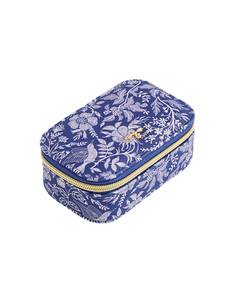 Striking and stylish, where else would you want to house your most precious pieces of jewellery than inside the Agnes Blue Ditsy Small Jewellery Box? With its eye-catching floral print made up of berries and blossoms and a chic gold zip to keep everything safe, inside you'll find five ring slots, two compartments and an elasticated pocket to ensure your items remain organised. Sparking joy just by looking at it, it's also just the right size to take away with you so you don't have to be apart from your favourite accessories.