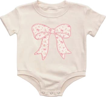 The Ditsy Floral Bow Patch Short Sleeve Romper is a trendy and whimsical romper for babies to welcome Spring!