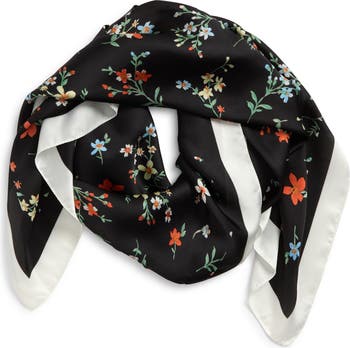 An artsy floral print blooms across this lightweight and silky scarf that adds a pop of glam to any look you pair it with.