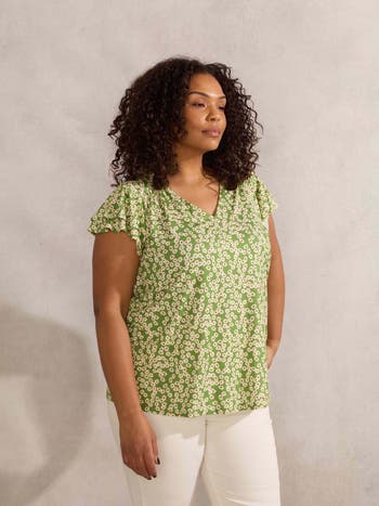 Ditsy Jersey Flutter Sleeve Top