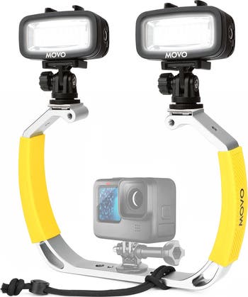 SOLID CAMERA RIG WITH RUBBERIZED HANDGRIPS - Strong aluminum alloy tray with yellow rubberized handgrips that are corrosion resistant and provides stable shooting on underwater dives as well as on land MULTIPLE MOUNTING OPTIONS - Features two cold shoe mounts for LED GoPro light, microphone, monitor and other gear, as well as a central action mount. Works well with GoPro super suit and other scuba diving accessories 1-YEAR WARRANTY: We’ve got your back. Our products are designed to ease your technical woes, not add to them. Our friendly US-Based support is here to help BUNDLED WATERPROOF LED LIGHTS - Two powerful 700 lumen lights that works up to 130 feet underwater. Each light features a long-lasting, rechargeable battery and a USB power adapter THREE LIGHT SETTINGS - Bright High Power mode, low output Power Saver mode, and flash strobe SOS mode. Includes 3 attachable color filters for white, orange, and purple lighting Take jaw-dropping underwater photos on your next dive trip with this all-inclusive bundle! The DiveRig1 is the ultimate two-handed stabilizer for shooting video while snorkeling or scuba diving. Rubberized hand grips and a wrist leash make it easy to hold on to, while the durable aluminum construction shrugs off drops and bumps with ease. An extended frame features two cold shoe mounts and a central action mount that works great with a wide range of underwater cameras, including the GoPro Hero series. The two bundled LED-WP lights each project 700 lumens up to depths of 130 feet. Three lighting modes cover all scenarios: High Power mode brings your photos to life, Power Saver mode is ideal for general illumination, and SOS mode will flash a continuous strobe in case of emergencies. The rechargeable battery lasts up to 7 hours and comes with a USB power adapter. Also included with each LED are 3 attachable color filters for white, orange, and purple lighting. Specifications (GB-U80): Composition: Aluminum Alloy Load Capacity: 11 lbs Dimensions (LxHxW): 9.65 x 6.8 x 1.45” Weight: 13.9 oz Specifications (LED-WP): LED Bulb Count: 20 Charge Voltage: 5V Charge Current: 500mA Power: 6W High-power battery length: 80 minutes Power-saver battery length: 6 hours SOS battery length: 7 hours Wattage: 6 watts/20 bulbs Depth Rating: 130’ Color Temperature: 5500K Lumen: 700LM Built-in Battery: 1900mAh Weight: 153g Dimensions (LxHxW): 75.5 x 51 x 61.6