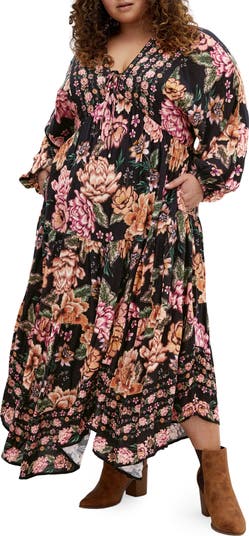 Feel your dreamiest in this fluttery floral dress featuring a tiered skirt made with a handkerchief hem.