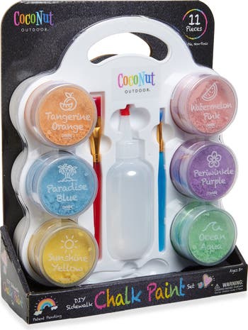 Kids can show off their artistic side while outside with this chalk set featuring six different powdered chalks that once mixed with a little water can be painted onto the sidewalk. The 11-piece set includes two paint brushes that can be used to paint different designs.