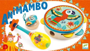 Inspire kids to get musical with a set of three instruments featuring bright, festive designs.