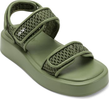 Breezy mesh straps add sporty attitude to a casual-cool sneaker set on a chunky platform.