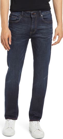 Medium-indigo denim is subtly faded and whiskered to make an instant old favorite of jeans cut slim with comfort-stretch and a streamlined fit.