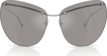 Powered by Y2K nostalgia, DIESEL's superhero-esque Oval D hardware flashes at the slender temples of rimless metal sunglasses with mirrored lenses and cat-eye frames exaggerated to statement-scale proportions.