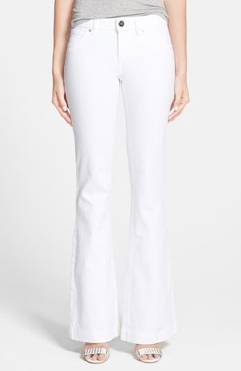 Silvertone hardware and tonal topstitching complement the pristine white denim of these kicky flare-leg jeans.
