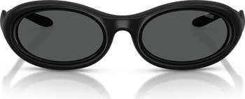 Powered by Y2K nostalgia, DIESEL's superhero-esque Oval D plaque flashes at the curved temples of retro-futuristic Italian-made sunglasses with injected oval frames and mirrored lenses.