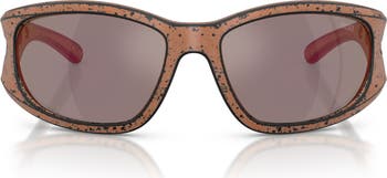 Powered by Y2K nostalgia, DIESEL's superhero-esque Oval D plaque flashes at the curved, cutout temples of sporty Italian-made sunglasses with sleek injected frames modeled after classic wraparound styles.