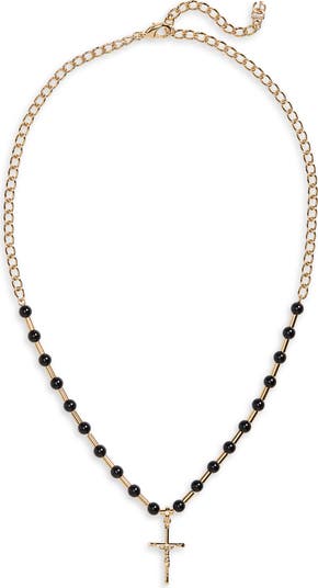 Glossy beads lead to the crucifix pendant that is the centerpiece of this rosary-inspired necklace that puts the label's Italian craftsmanship on display.