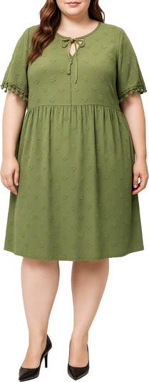 Passementerie-edged cuffs put the final tonal-textured touch on this simple and sweet dress made from dobby-patterned fabric.