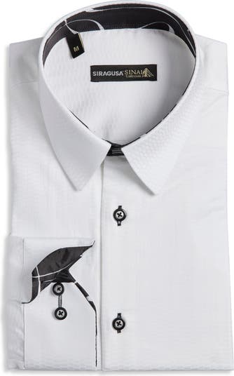 Classic and versatile, this dobby-cotton dress shirt features printed silk trim at the cuffs and collar, making this an easy choice that takes your look from desk to post-work drinks.