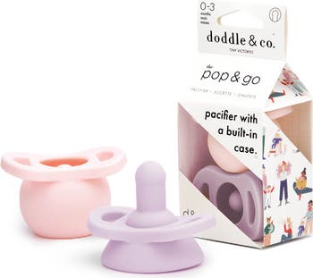 A retractable nipple pops back into its protective bubble when this pacifier is dropped, so you won't have to worry about washing it when you're on-the-go. Since it's 100% silicone and dishwasher safe, you might even have time to sit down and relax for a few minutes. This pacifier is specifically for use as baby begins teething, with a firmer nipple designed to be bite resistant. This two-pack comes in a milk-carton shaped box, perfect for gifting or for giving your own half-pint something new to play with.