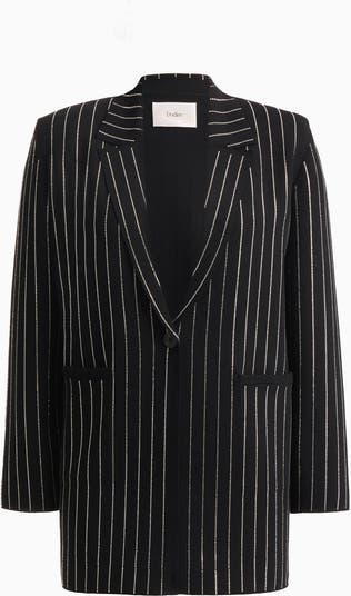 Tailored in sleek jewel pinstripe, the ELSIE blazer features subtle shoulder padding for soft structure and layers effortlessly from day to night.