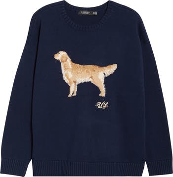A very good dog defines a comfy cotton sweater that also features a bit of brand love scripted below.