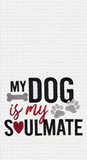 Dog is My Soulmate Kitchen and Bathroom Embroidered Waffle Hand Towel