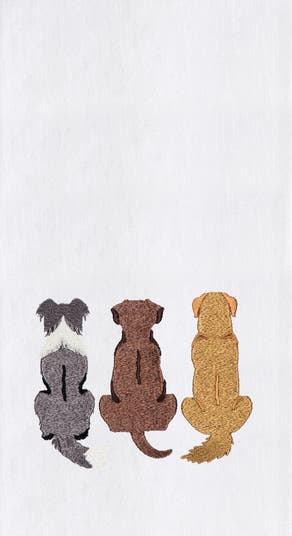 Dog Tails Trio Kitchen and Bathroom Embroidered Waffle Hand Towel
