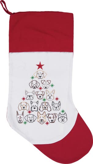 Decorate your favorite space with your favorite pet! This stocking displays a cute embroidered pattern that celebrates all your favorite dog breeds and their zoomies, wiggle butts, and bow wows. Coordinate the Dog Face Christmas Tree stocking with the cat stocking, or give it as a gift for someone who really loves their pooch!