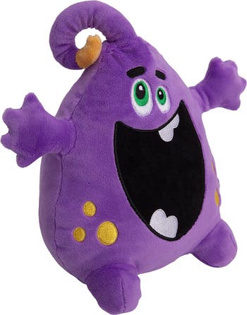 SNUGAROOZ: 2-IN-1 - DISTRACTING DAVE - Prepare for double the fun with Distracting Dave, the ultimate 2-in-1 Toy! At first glance, Dave captivates with his vibrant purple outer layer, but the excitement doesn't stop there. Once your pup delves deeper, they'll discover a surprise TPR ball inside, adding an extra layer of chewable delight. Dave isn't just a toy; he's a playful and beloved character, sure to become your dog's favorite source of amusement. Crafted from recycled water bottles, Dave is not only a joy for your pet but also a friend to the environment. He comes equipped with both crinkle and squeaker elements for a variety of engaging sounds. Get ready for endless fun and distraction with Distracting Dave, the toy that keeps on giving! FUN DETAILS: Rubber ball inside. Embroidered details. Built-in squeaker. Crafted from recycled water bottles. Soft cotton texture. Crinkle paper. DIMENSIONS: 7 x 8 inches. MADE FROM RECYCLED WATER BOTTLES: Plastic bottles sorted for quality. Bottles are broken down and washed. Raw material is turned into a fiber. Then used for the stuffing of your beloved toys. Saving the planet one toy at a time! SnugArooz plush toys are crafted to squeak and crinkle their way into every furry heart. Snuggle. Cuddle. Play.