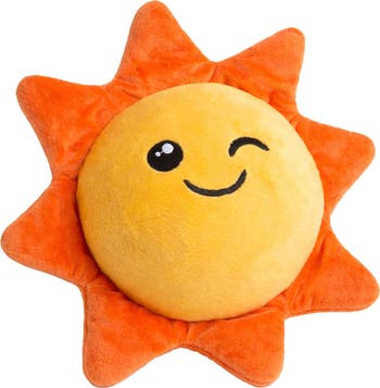 SNUGAROOZ: 2-IN-1 - SWEET SUNSHINE - Treat your pup to the perfect companion for a sunny day - Sweet Sunshine (2 in 1 Toy)! This adorable plush yellow squeaker toy features an irresistible winking eye surrounded by fun orange flames and will bring all the joy of summer fun wherever it goes. Toy is made from recycled water bottles and contains eco-friendly squeaker and crinkle material for hours of crinkly, squeaky fun. THE PERFECT PLUSH FOR TINY CHEWERS: A durable, compact plush toy designed for small dogs and puppies. Made from soft yet sturdy fabric, it's gentle on gums and perfect for satisfying their chewing instincts. FUN DETAILS: Rubber ball inside. Embroidered details. Built-in squeaker. Crafted from recycled water bottles. Soft cotton texture. Crinkle paper. DIMENSIONS: 4.5 x 5 inches. MADE FROM RECYCLED WATER BOTTLES: Plastic bottles sorted for quality. Bottles are broken down and washed. Raw material is turned into a fiber. Then used for the stuffing of your beloved toys. Saving the planet one toy at a time! SnugArooz plush toys are crafted to squeak and crinkle their way into every furry heart. Snuggle. Cuddle. Play.