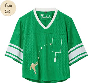 Darn! Doinked another one, coach! This is a boxy, cropped jersey silhouette. It runs true to size for women for an intended oversized look. Given the crop, men who want a more traditional fit should size up.