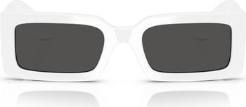 A bold logo plate brands the temples of retro-inspired rectangular sunglasses fitted with UV-protective lenses.