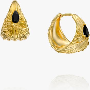 Elegant earrings set with natural black agate stones in a delicate pear shape. These earrings balance bold design with refined simplicity, making them a versatile and eye-catching addition to any collection