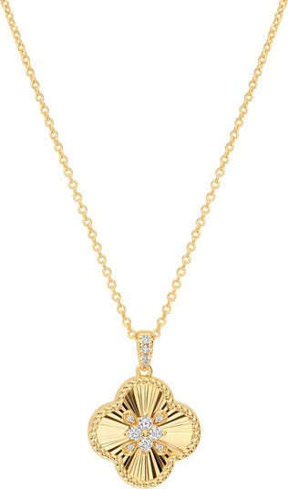 Bring radiant elegance to your look with this fluted clover pendant necklace sparkling with pavé cubic zirconia and gleaming in 14-karat-gold plate.