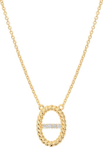 An oval rope pendant is spanned by a bar of shimmering pavé cubic zirconia on this elegant pendant necklace plated in gleaming 14-karat gold.