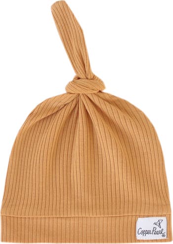 An adorably knotted top sweetly completes this fitted cap that will keep your baby's little head all cozy and warm.