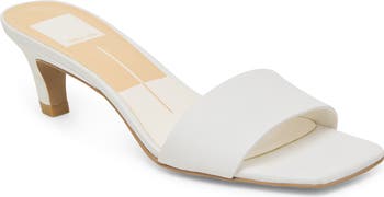 A softly squared-off toe and low kitten heel emphasize the '90s aesthetic of this minimalist slide sandal made from smooth leather.